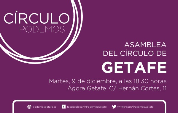 La próxima asamblea del Círculo tendrá lugar el martes 9 de diciembre en la Asociación Ágora Getafe (C/Hernán Cortés, 11) a las 18:30h. La propuesta para el orden del día es: