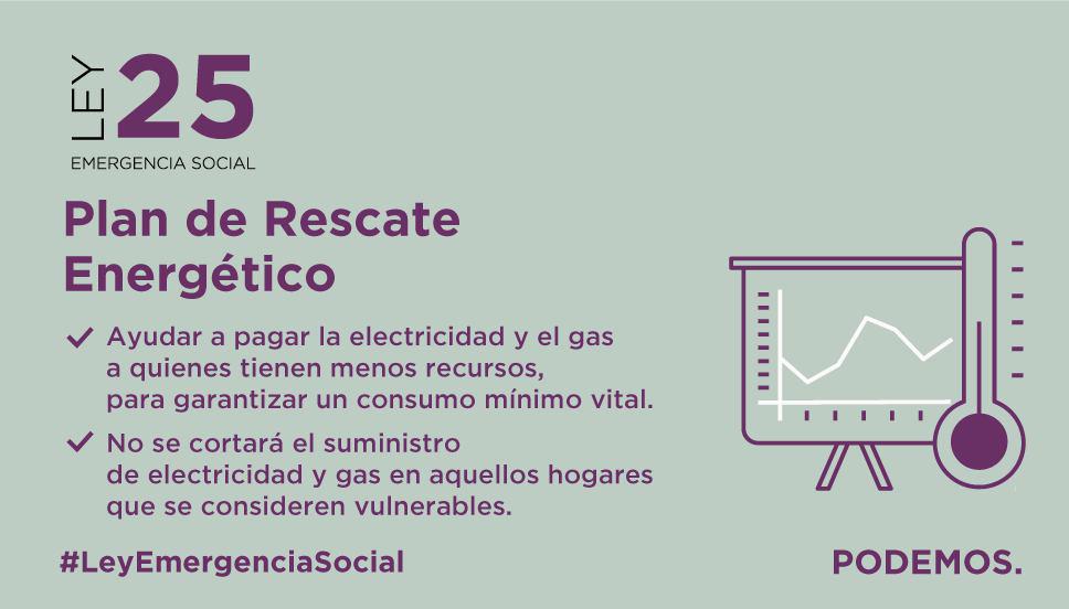 Por eso, nuestra Ley25 de emergencia social es ese primer paso para llevar a cabo nuestro Plan de Rescate Ciudadano. Se trata del inicio de un proceso que este miércoles 13 dará el primer paso y convocará durante las siguientes semanas a miembros de la sociedad civil, organizaciones y movimientos a dialogar y exigir lo que la gente necesita con urgencia. Se trata de una Ley25 que contiene medidas de sentido común. Nadie podría negarse a ellas. Las medidas fundamentales están orientadas a combatir la pobreza energética, garantizar el derecho a la vivienda y al acceso universal a la salud.